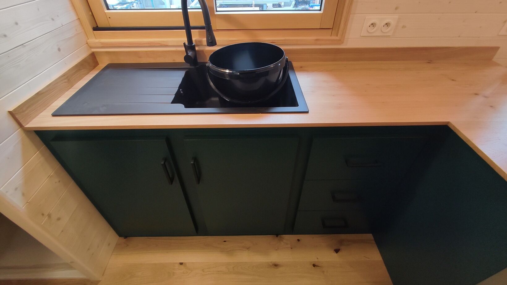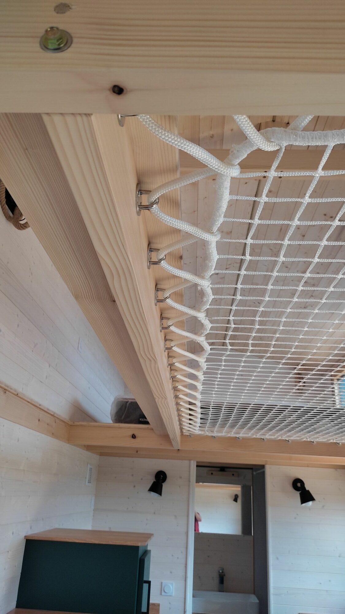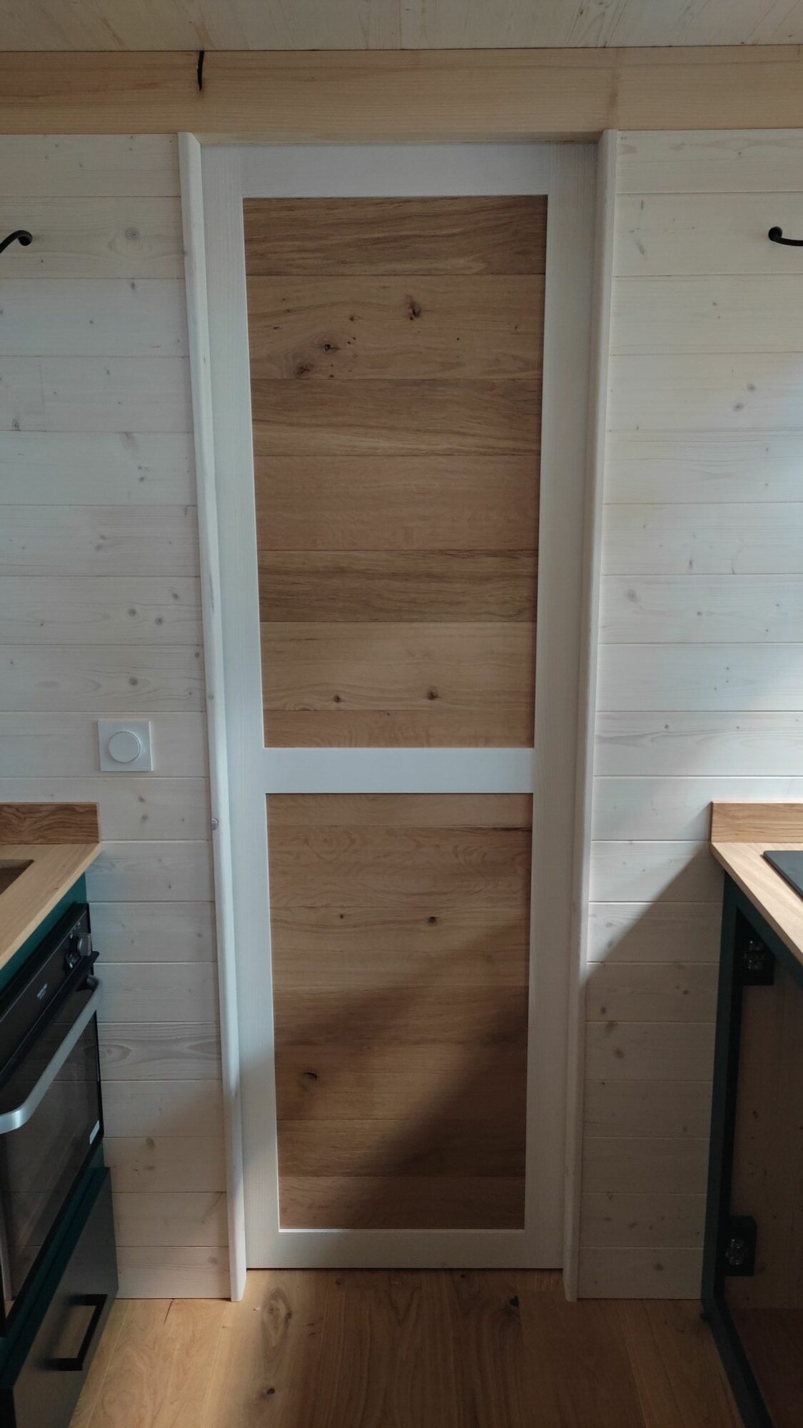 Suite à une blessure, un ami menuisier avait pris du retard dans la fabrication d’une de ses jolies tiny house dont il a le secret, je lui ai donc proposé un petit coup de main pour l’aider à avancer plus vite. Dans ce petit chantier il s’agissait de réaliser des portes de caisson pour les meubles de la cuisine, de réaliser la porteet les meubles de la salle de bain, une petite échelle de meunier pour accéder à une des mezzanines de couchage et enfin d’installer un filet de protection entre les mezzanines.